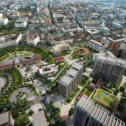 Kompeks čine četiri samostojeće kule gde svaka ima prepoznatljiv arhitektonski identitet. Viši spratovi namenjeni su stanovanju, dok se u prizemlju nalaze maloprodajni, ugostiteljski i uslužni sadržaji, čime se stvara uravnotežen urbani ambijent.