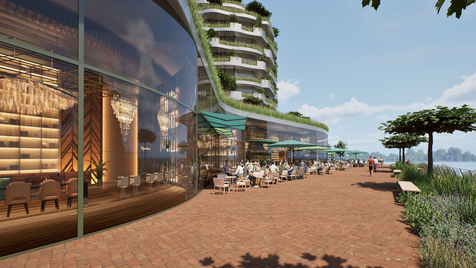 Kej je organizovan na dva nivoa. Donji nivo je predvniđen za infrastrukturnu podršku vodenim i drugim sportovima — biciklizmu, rolerima, skejtbordu i drugim sadržajima koji čine savremeni urbani život.